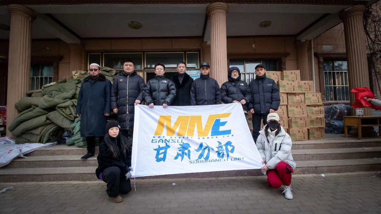 次日,MME街舞甘肃分部及时响应救援号召,经甘肃省文联及MME街舞总部批准后,面向全国MME街舞机构筹集捐款,甘肃分部迅速筹备棉被、枕头、方便面、饮用水、火腿肠(均为清真食品)等救灾物资,价值4万余元,连夜对接装车,于12月20日将所筹备物资送至灾区一线。
