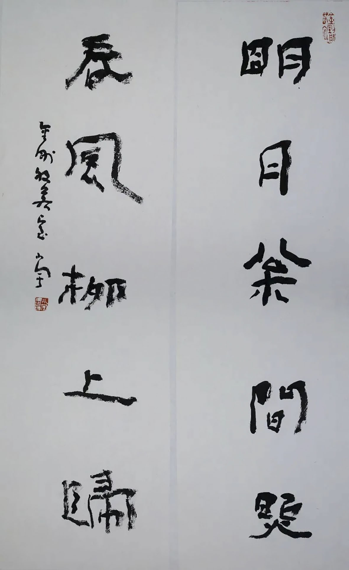 隶书“明月春风”联 69cm×17cm×2